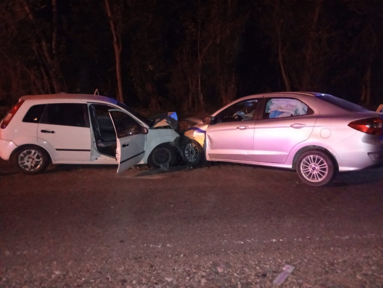 Por razones que se tratana de establecer, se produjo una colisión frontal entre dos automóviles que circulaban en sentidos contrarios por Ruta 143 Vieja. Un Ford Fiesta circulaba de norte a sur y era conducido por un hombre de 50 años, quien fue trasladado al Hospital Enfermeros Argentinos en ambulancia.